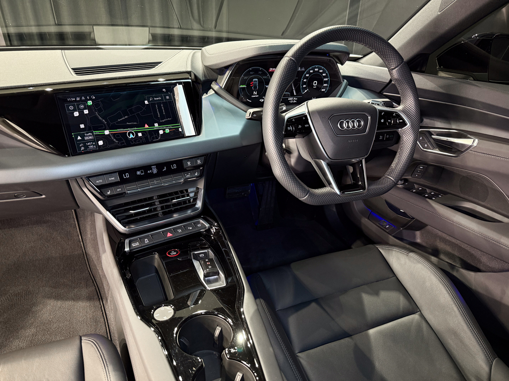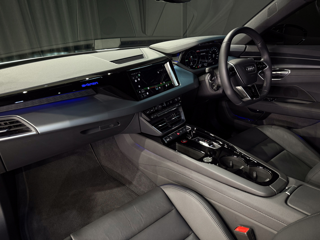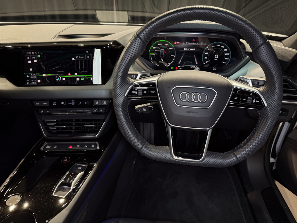 Panoramic Sunroof, Bang & Olufsen Sound System, Park Distance Control (Front & Rear), 360 Camera, E-tron GT Illuminated Door Projection Lights, Navigation, Electric Memory Seats for Driver, Black Leather Seats, Heated Seats for Driver and Front Passenger, Digital Cluster, Touchscreen Radio, Keyless Start, Multifunction Steering Wheel with Paddle Shift, Cruise Control, Bluetooth, Ambient Interior Lighting, Driver Assist, Automatic Headlights, Dual Zone Climate Control, USB-C Ports, Heated Steering Wheel, Voice Control