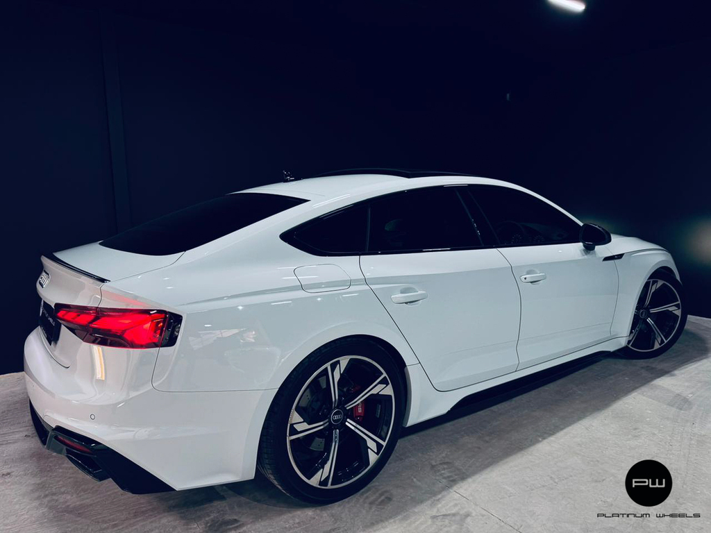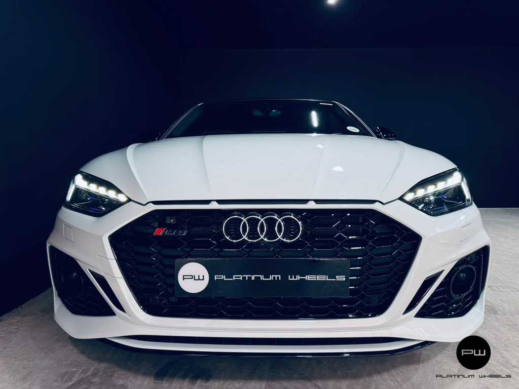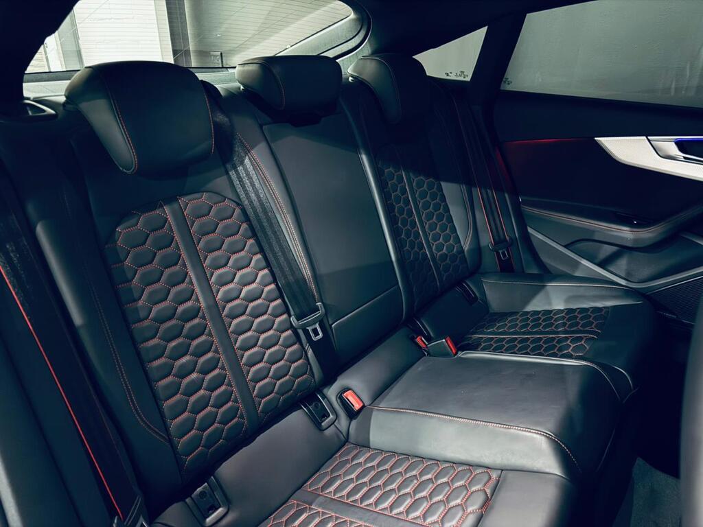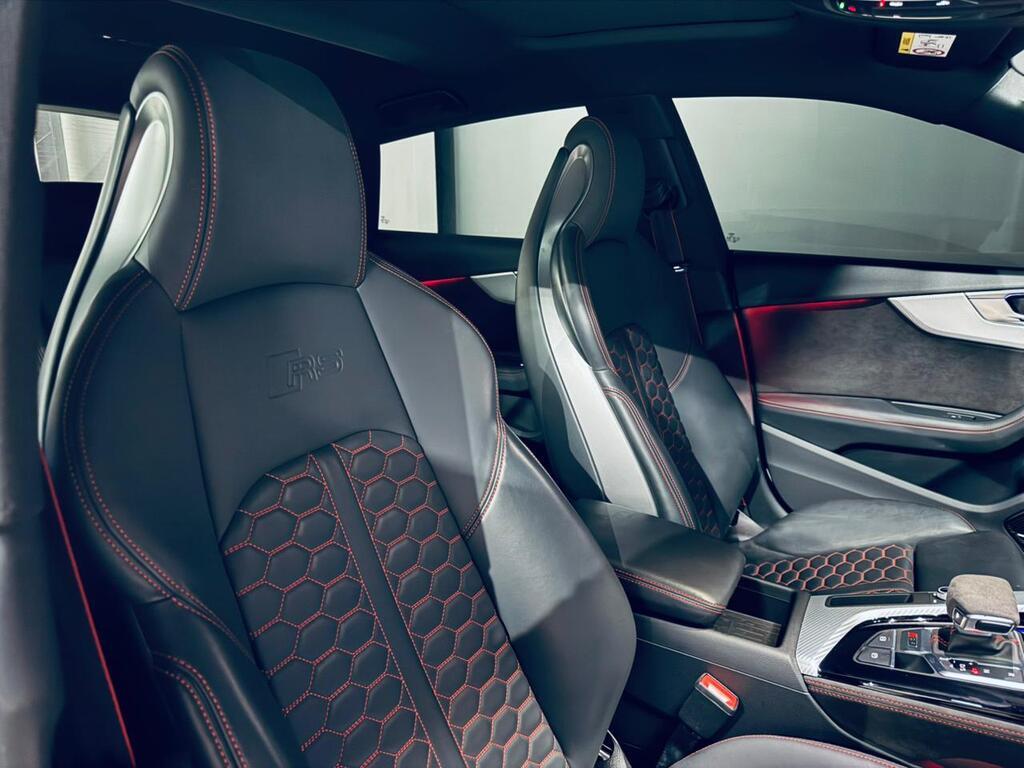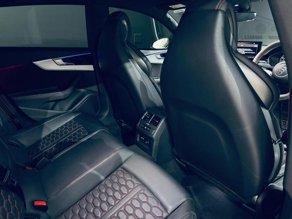 Panoramic Glass Sunroof, Matrix LED Headlights with Audi laser-style daytime signature, LED tail lights with dynamic indicators, Front & Rear Park Distance Control (PDC), Surround View Camera System (Front, Rear & Side Cameras), Body-colour exterior mirrors, RS-specific front and rear bumpers, Audi Sport illuminated door entry lights (projection mirrors), RS 5-Spoke Alloy Wheels, Steel Brake System, Red Brake Calipers (RS branded), RS Sport suspension, Electronic Stability Control with RS tuning, RS Sport Seats in Leather, Hexagon stitching pattern on seats, Heated front seats, Flat-Bottom RS Steering Wheel (leather), Aluminium RS interior inlays