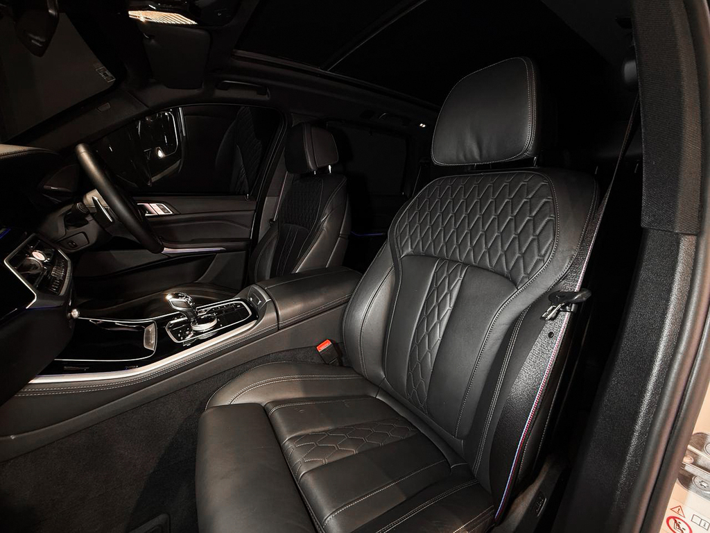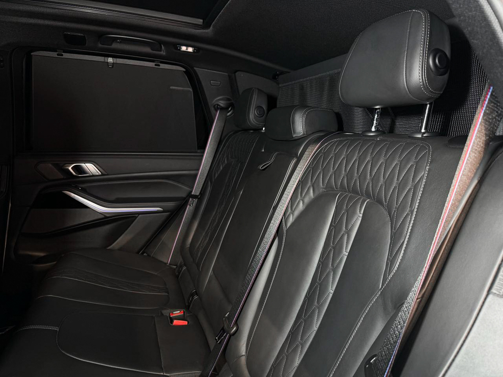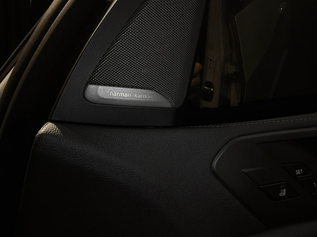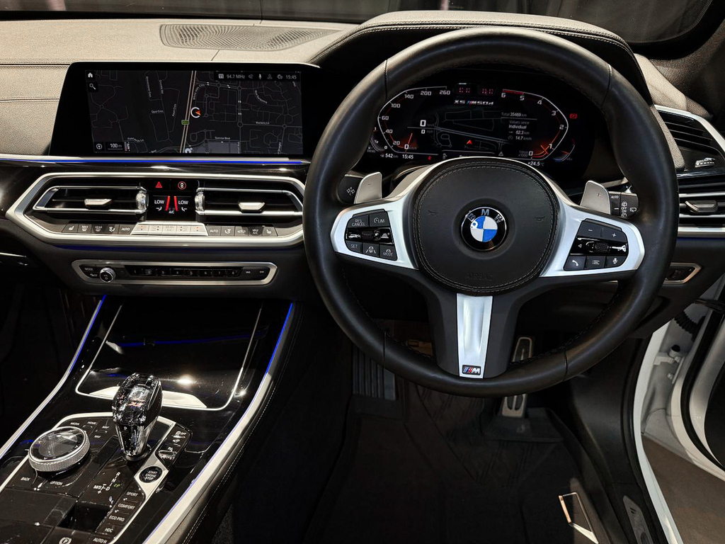 BMW Gesture Control, Convenience telephony with extended smartphone connectivity, Connected Package Professional, Harman/kardon Surround Sound System, Head-up display (not with grey shade band windscreen), Parking Assist Plus, BMW Laserlight, Driving Assist Professional, Active Protection, High Beam Assist, Ambient Air Package, BMW Individual interior trim finishers piano finish black, M seat belts, Travel & Comfort System, Glass application 'CraftedClarity' for interior elements, Seat heating for driver and front passenger, Front comfort seats, BMW display key, Trailer tow hitch, fully electrically operated, Comfort Access, BMW Individual extended leather trim 'Merino' Black, Soft close automatic system for doors, Anthracite roof lining, M Aerodynamic kit, Steering wheel M Leather, BMW Live Cockpit Professional, Ambient interior lighting, Expanded exterior mirror package, Automatic air conditioning with 4-zone control, Panorama glass sliding/tilting sun roof, electrically operated, Adaptive M Suspension, Tyre Pressure Monitoring, M Sport brakes, M Sport exhaust system