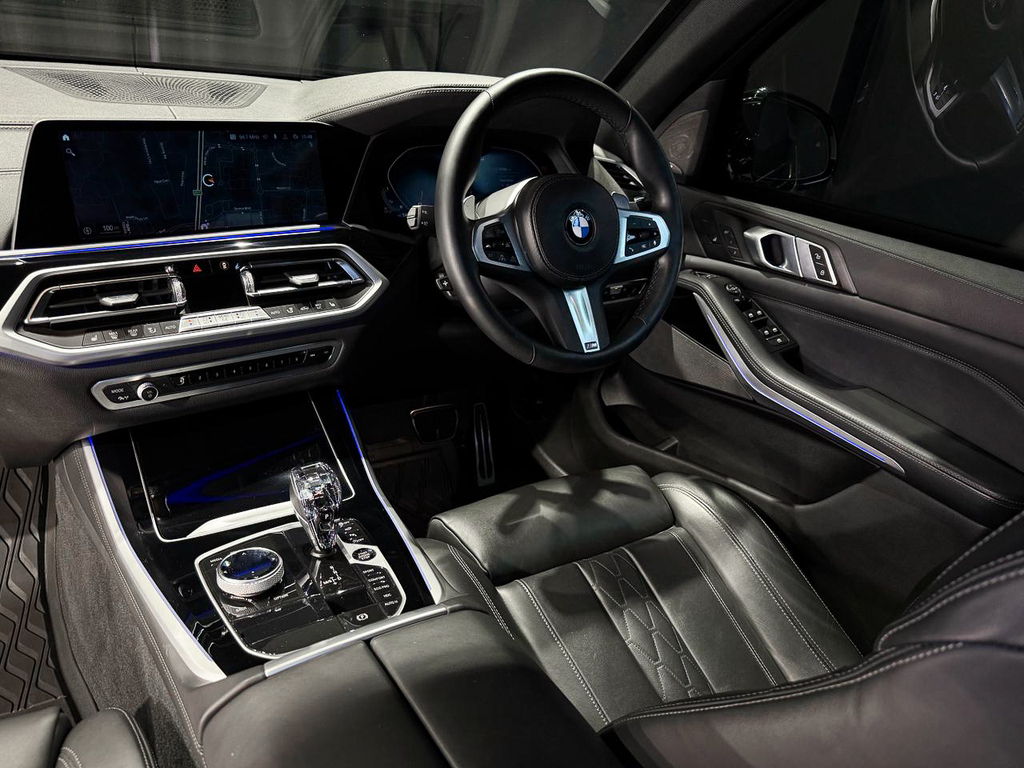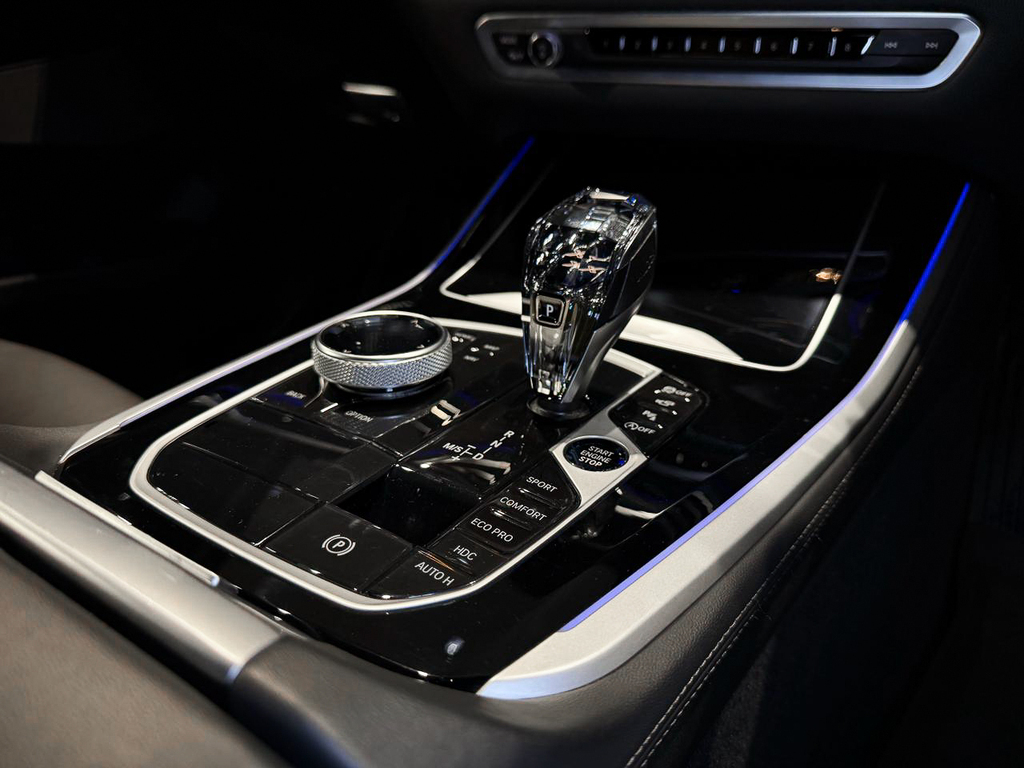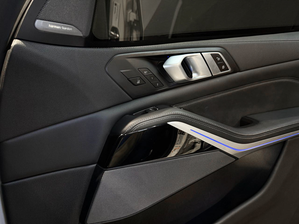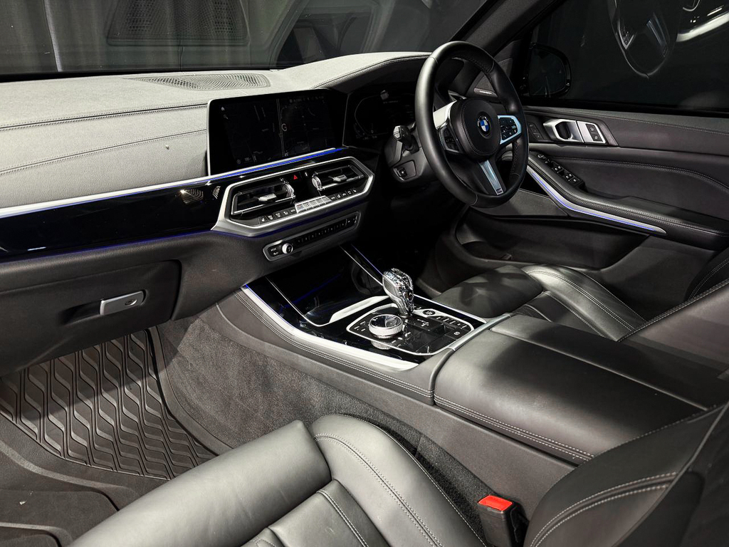 BMW Gesture Control, Convenience telephony with extended smartphone connectivity, Connected Package Professional, Harman/kardon Surround Sound System, Head-up display (not with grey shade band windscreen), Parking Assist Plus, BMW Laserlight, Driving Assist Professional, Active Protection, High Beam Assist, Ambient Air Package, BMW Individual interior trim finishers piano finish black, M seat belts, Travel & Comfort System, Glass application 'CraftedClarity' for interior elements, Seat heating for driver and front passenger, Front comfort seats, BMW display key, Trailer tow hitch, fully electrically operated, Comfort Access, BMW Individual extended leather trim 'Merino' Black, Soft close automatic system for doors, Anthracite roof lining, M Aerodynamic kit, Steering wheel M Leather, BMW Live Cockpit Professional, Ambient interior lighting, Expanded exterior mirror package, Automatic air conditioning with 4-zone control, Panorama glass sliding/tilting sun roof, electrically operated, Adaptive M Suspension, Tyre Pressure Monitoring, M Sport brakes, M Sport exhaust system