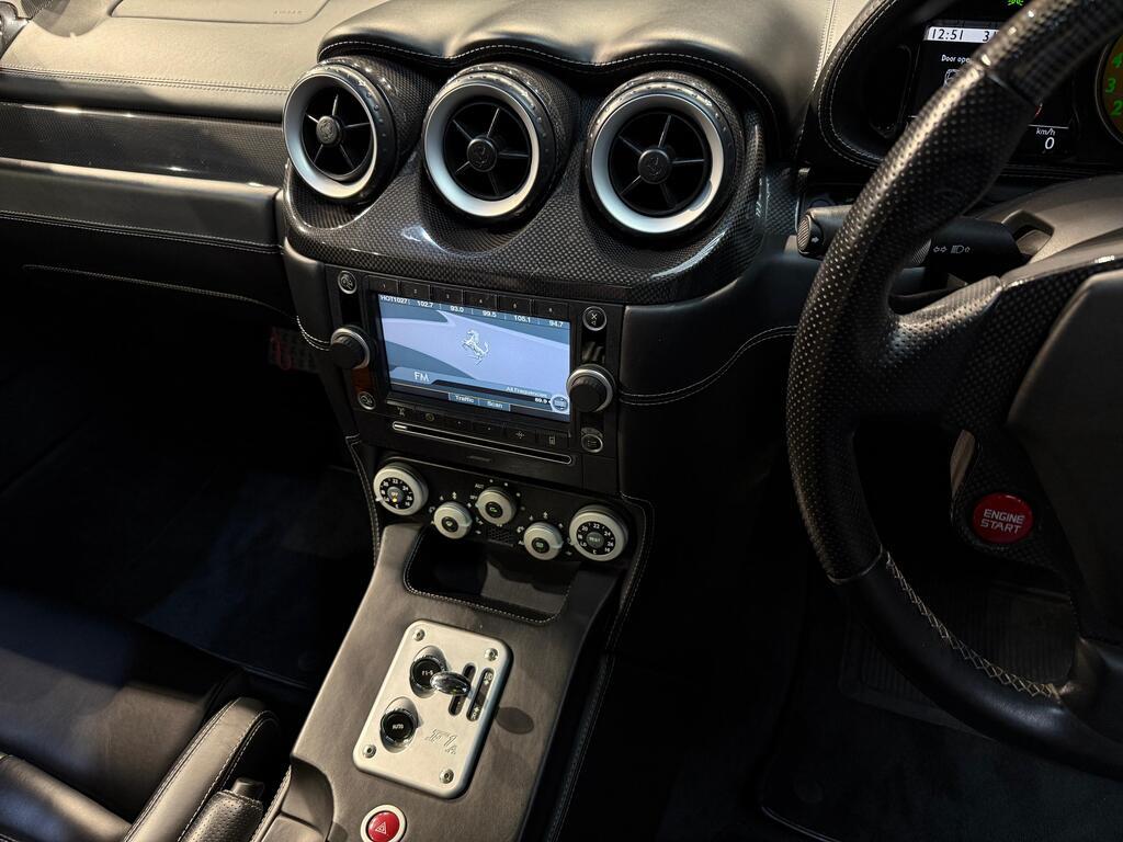 Carbon Ceramic Brakes, Xenon Headlights, Paddle Shift, Electric Memory Seats, Cruise Control, Carbon Fibre Interior Touches, Park Distance Control Front and Rear, Panoramic Sunroof, Bose Sound System, Ferrari shields, Carbon Fibre steering, White contrast stitching, Navigation.