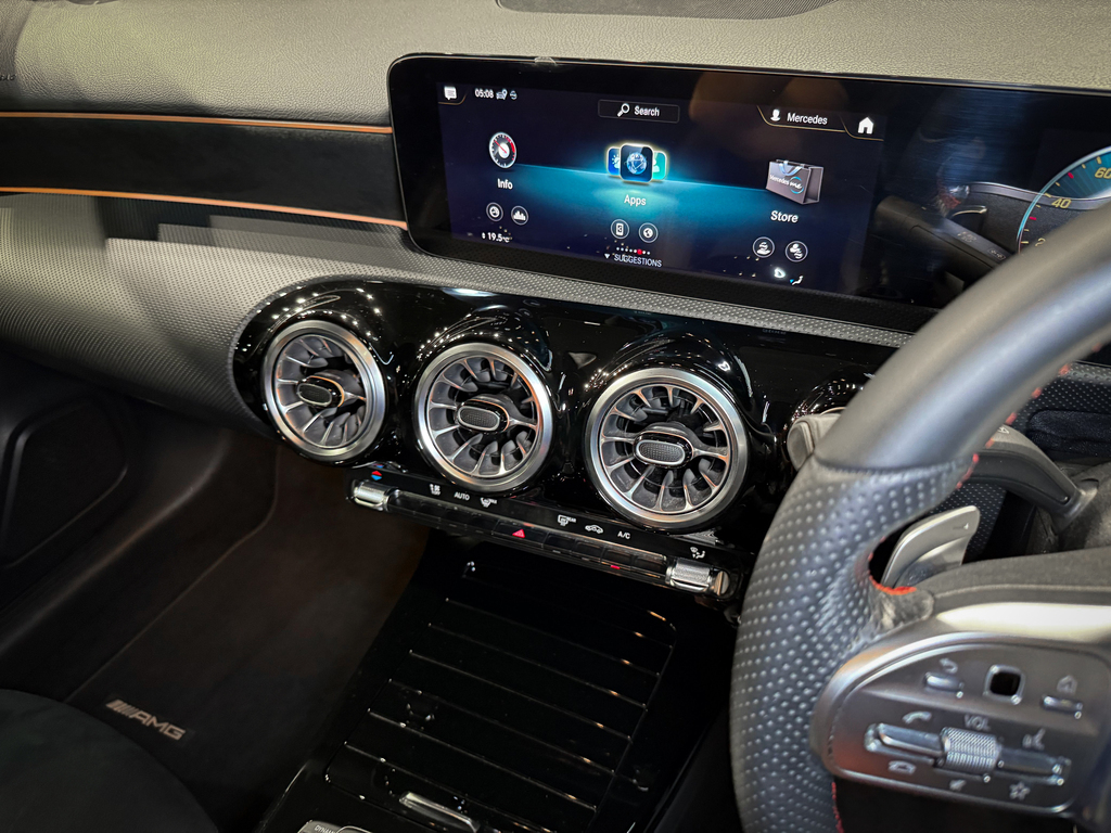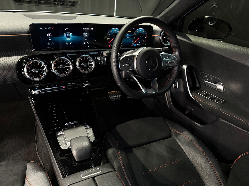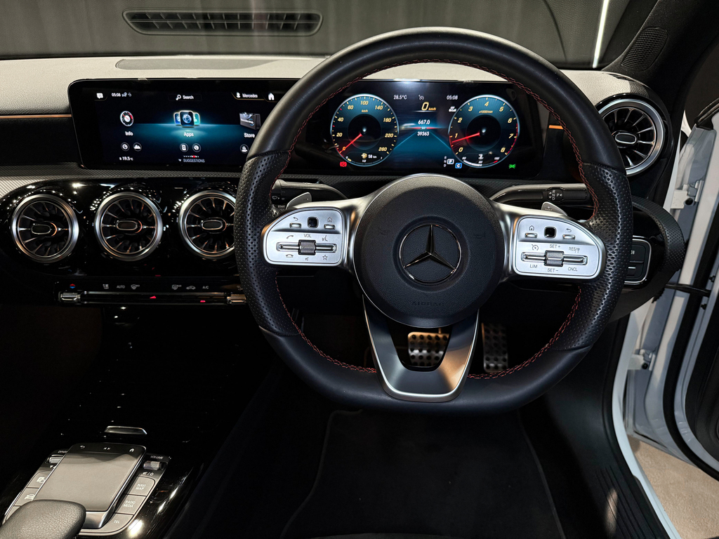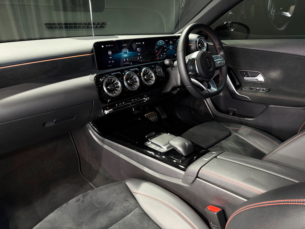 AMG Line, Automatic Panoramic Sliding Sunroof, Park Distance Control (Front & Rear), LED High Performance Headlights, Keyless Start, Reverse Camera, Semi Leather and Alcantara Seats with Red Stitching Details, Cruise Control, Attention Assist, Ambient Interior Lighting, Multifunction Steering with Paddle Shift, Automatic Headlights, Bluetooth, USB, Voice Control, Isofix, Digital Display, Touchscreen Radio, Active Parking Assist, AMG Multi-Spoke Wheels 19" All Round, Apple Carplay + Android Auto, Speed Sensitive Power Steering / Vario Steering, Collission Warning System with FCW-Stop Active Brake Application, Electrically Folding Exterior Mirrors, Supersport Steering Wheel (Leather Deep-Embossed), Parking Package, Night Package.
