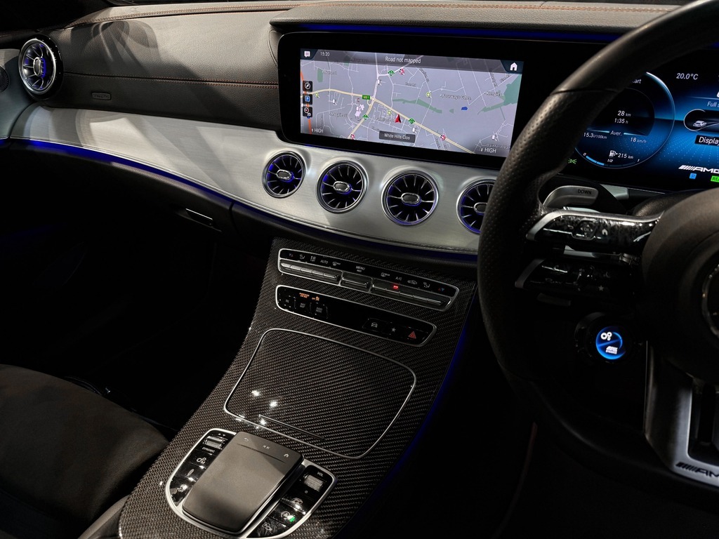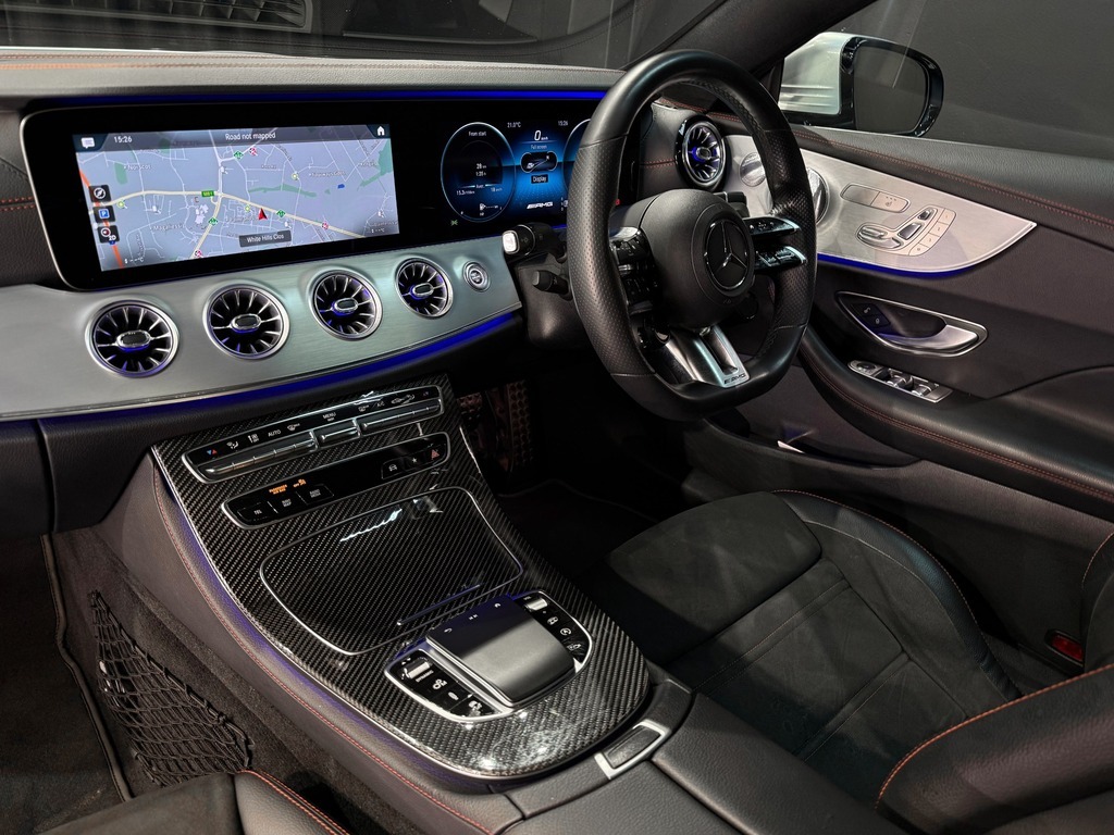 AMG Sport Package Interior with Ambient Lighting, AMG Styling Package-Front Spoiler and Side Skirts, Alcantara leather with carbon finish, Keyless Go Package, Mirror Package, Instrument Panel Covered In Leather, Sports Exhaust System, Active Park Assist, Cruise Control, Park Distance Control front and rear, 360 Camera, Multi-functional Steering Wheel in Leather, Digital Service Booklet, Burmester Sound System, Navigation, Smart Phone Integration, Apple CarPlay, Android Auto, Memory Package on Seats and Mirrors, Front Heated Seats, Inflation Pressure control, Airmatic Air Suspension, Automatic Climate Control, Intelligent Headlight Control Plus. Anti Dazzle Mirrors, Panoramic Sunroof, Dynamic Select.