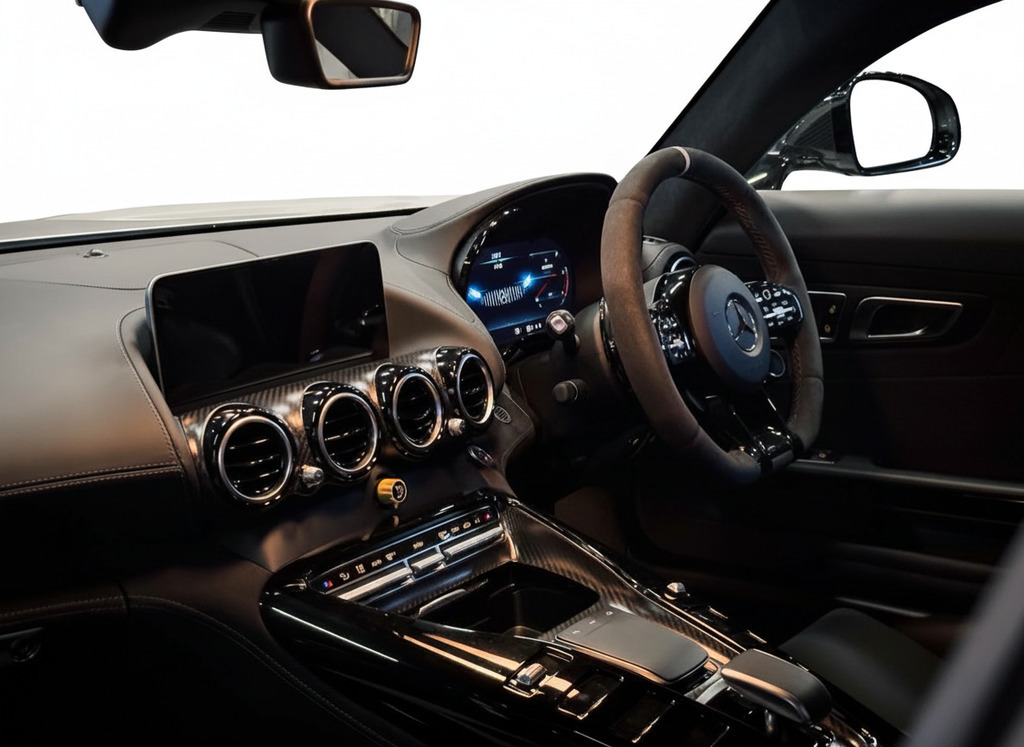 AMG Ride Control, AMG exterior- Carbon package, AMG - ceramic brake system, AMG track package, Microfiber AMG steering wheel, V8 spark-ignition engine M178 - AMG, AMG Interior Night Package, AMG spoke wheels 19"/20" mixed tires, AMG steering wheel buttons (AMG Drive Unit), Static carbon AMG rear spoiler, Front camera, Rear view camera, Rear parking assist, Carbon seat, Lane package, Blind Spot Monitoring, Automatic dimming inside rearview mirror and outside mirrors, Digital service booklet, Collision warning system with FCW-Stop active brake application, 7-speed automatic dual-clutch transmission, Tire pressure monitor (TPM), Automatic climate control, Burmester Sound System, Ambient lighting.