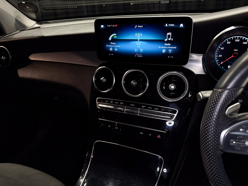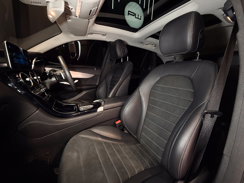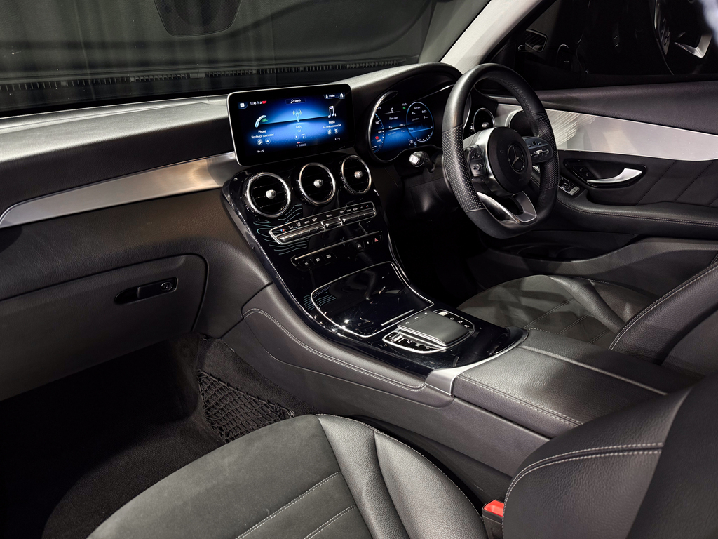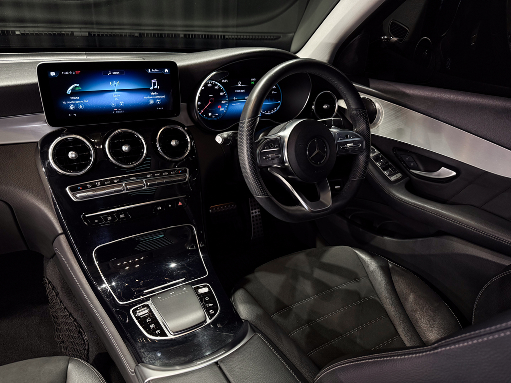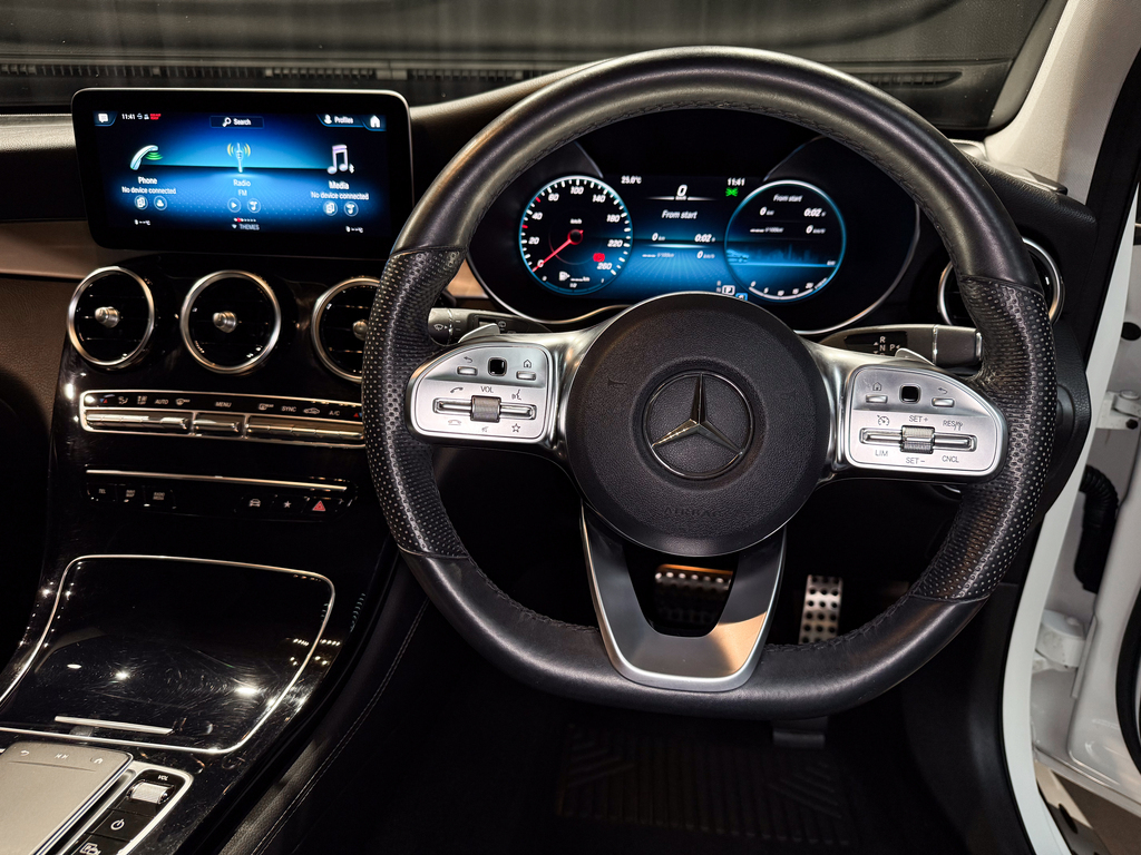 AMG Line, Dynamic Select (Manual Mode + Traction Control Off Option), Tow bar, Side steps, Park Distance Control (Front & Rear), Reverse camera (multi-angle adjustable), Parking Assist, Tow-away protection, Panoramic sunroof, Full leather interior, Leather dashboard, AMG multifunction steering wheel, AMG floor mats, Updated infotainment system with touchpad controller, Standard sound system, Electric seats (side-mounted adjustment controls), Centre console fridge compartment, Dual-zone climate control, Rear passenger climate control access, SOS emergency button, Reading lights, Air conditioning.