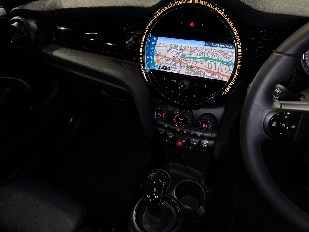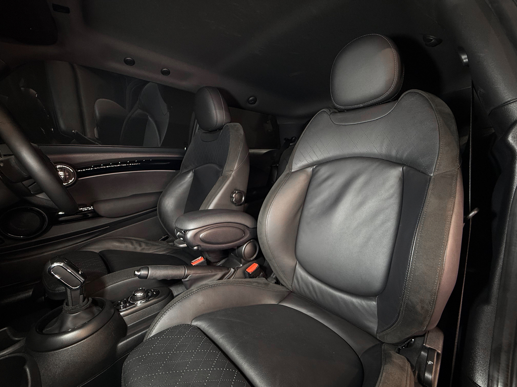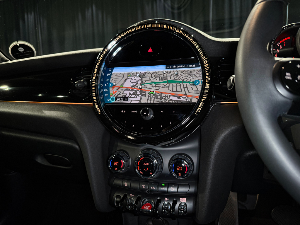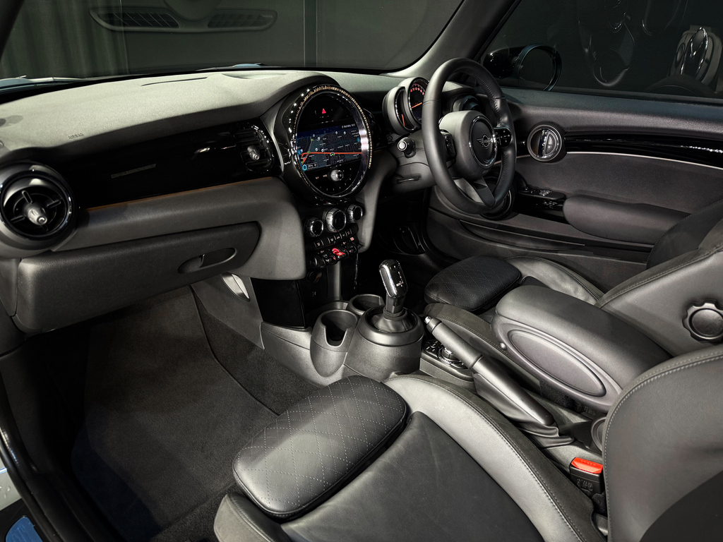 Premium Package Plus, MINI navigation system, MINI Connected, Smartphone Integration, Intelligent emergency calling, Extended Light Package, Ambient interior lighting, Headliner Anthracite, Rear view camera, Roof and mirror caps in Black, Comfort Access, Exterior mirror package (electrically folding and heated), 17" Roulette Spoke 2-tone with runflat tyres, Leather Cross Punch Carbon Black/Carbon Black, Moonwalk Grey Metalic, Radio MINI Visual Boost, Rear fog light, LED headlights, Cruise Control with Brake Function, Rain sensor and automatic headlight control, Park Distance Control (PDC) Rear, Sport seats for driver and front passenger, Automatic anti-dazzle interior mirror, Multifunction for steering wheel.