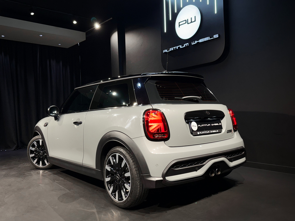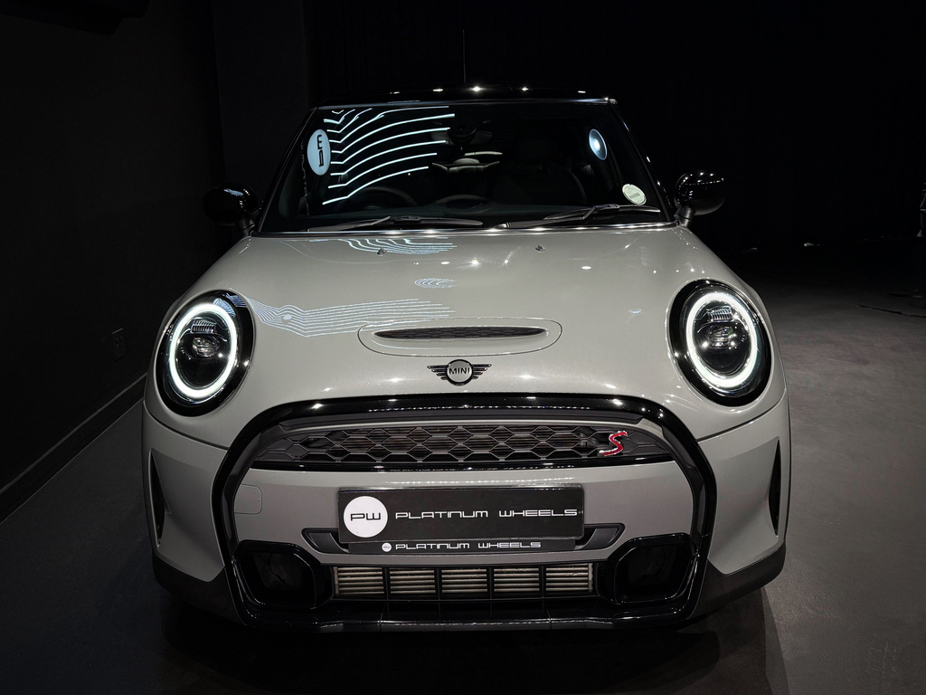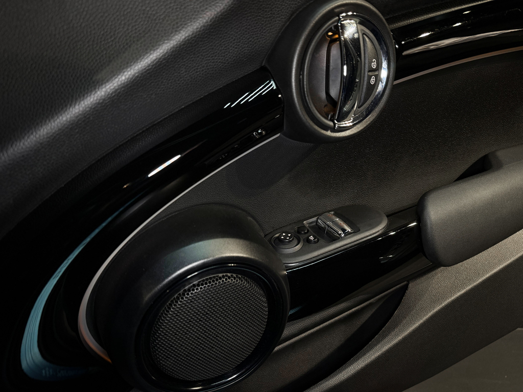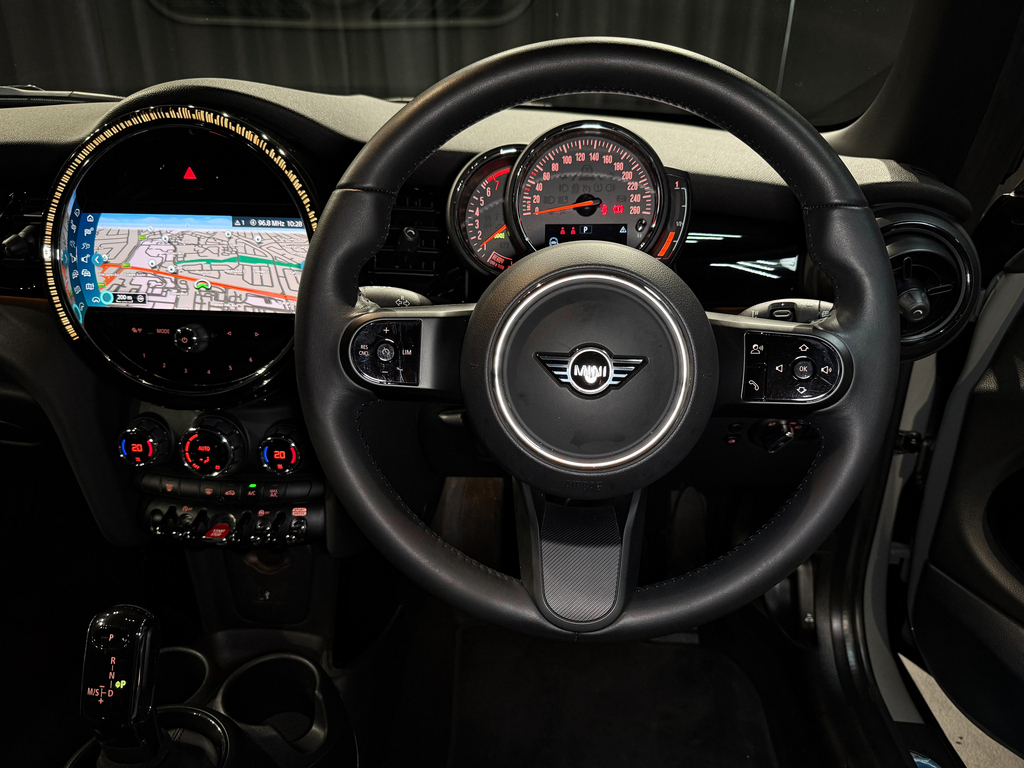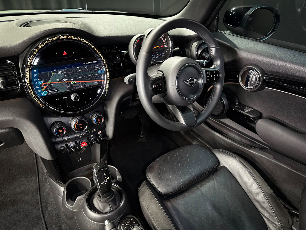Premium Package Plus, MINI navigation system, MINI Connected, Smartphone Integration, Intelligent emergency calling, Extended Light Package, Ambient interior lighting, Headliner Anthracite, Rear view camera, Roof and mirror caps in Black, Comfort Access, Exterior mirror package (electrically folding and heated), 17" Roulette Spoke 2-tone with runflat tyres, Leather Cross Punch Carbon Black/Carbon Black, Moonwalk Grey Metalic, Radio MINI Visual Boost, Rear fog light, LED headlights, Cruise Control with Brake Function, Rain sensor and automatic headlight control, Park Distance Control (PDC) Rear, Sport seats for driver and front passenger, Automatic anti-dazzle interior mirror, Multifunction for steering wheel.