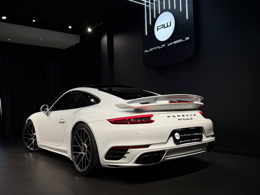 Seat Heating, Heated Multifunction Steering Wheel, Electric Slide/Tilt Sunroof in Glass, Power Steering Plus, Aerokit Turbo, LED Headlights in Black with Porsche Dynamic Light System Plus, Sport Chrono Stopwatch Dial in White, Porsche Crest on Headrests, Extended Deviated Stitching Interior Package, 7-speed Porsche Doppelkupplung (PDK), Automatically Dimming Mirrors, 20" 911 Turbo S Wheels, Porsche Ceramic Composite Brakes (PCCB), Rear Axle Steering, 2-Zone Automatic Climate Control, Roof Lining in Alcantara®, Navigation Module for Porsche Communication Management (PCM), BOSE® Surround Sound System, Voice Control, Cruise Control, Tyre Pressure Monitoring.